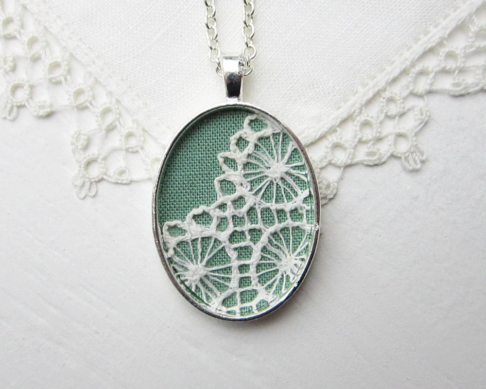 Best of ETSY TheWhirlwind Spring Pastel Jewelry Mint Wedding Mint Green Necklace, Pastel Necklace Seafoam Green Jewelry, Cottage Chic White Lace Pendant Jewelry