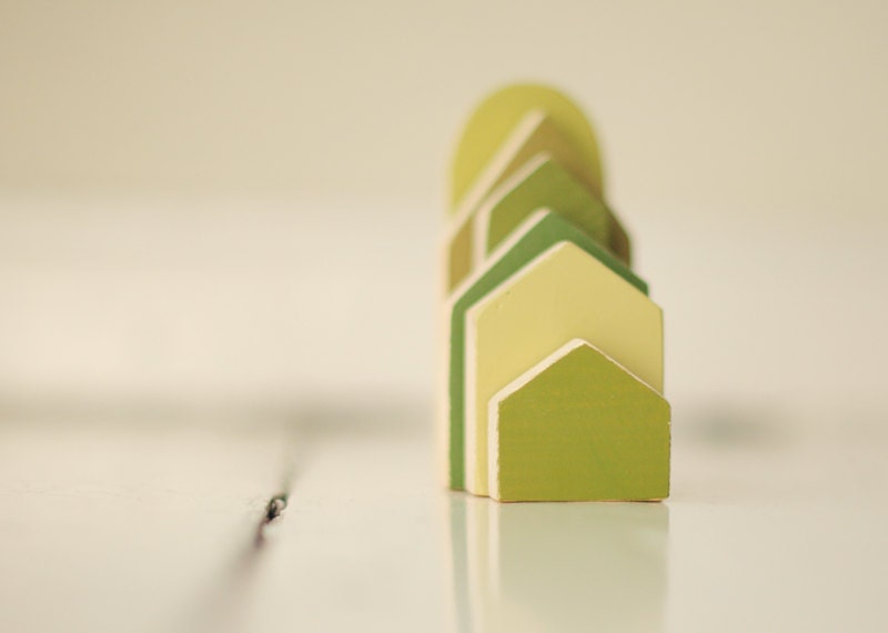 Best of ETSY ANAMARKO SET of 6 pcs - green houses - hand painted wooden village, miniature village, hand painted house, little wooden house, decorative house