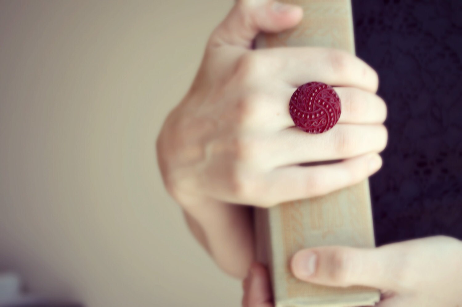 Best of ETSY raelwear Dark Red Cocktail Ring, Over Sized Ring, Statement Jewelry, Beaded Jewelry, For Her - J137-2