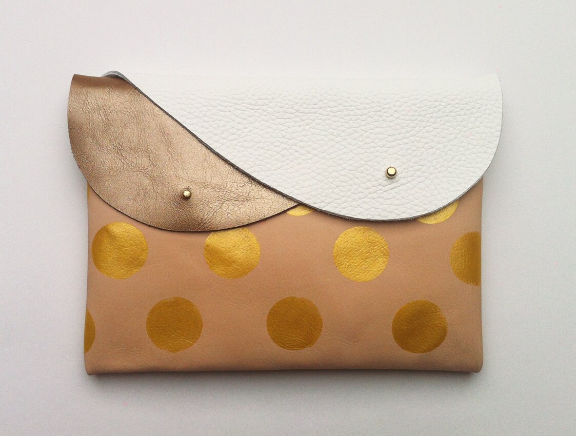 Best of ETSY BlackbirdAndTheOwl DOUBLE FLAP CLUTCH // make up bag // skin tone, gold and white leather